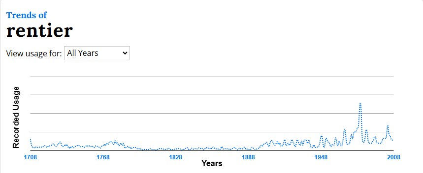 Rentier (1798) 사적 소유 재산 혹은 증권으로부터 나오는 수입으로 살아가는 사람.