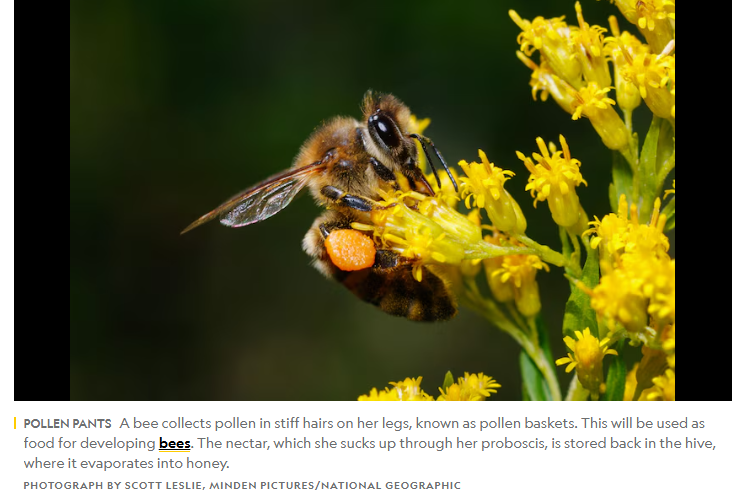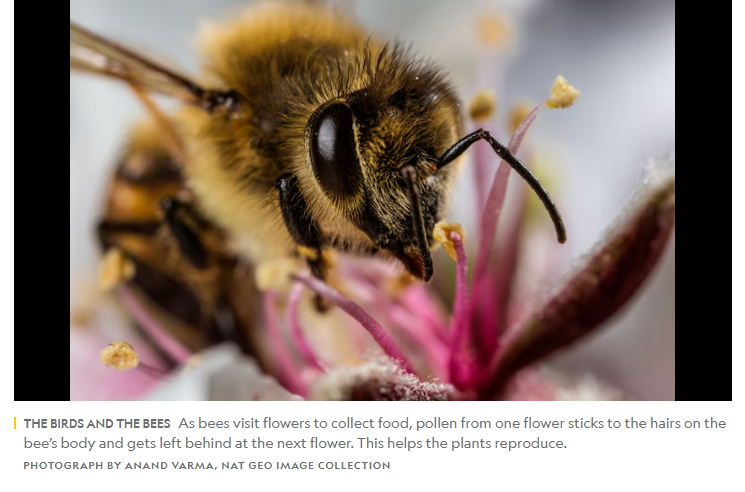 The Birds and the beesAs bees visit flowers to collect food, pollen from one flower sticks to the hairs on the bee’s body and gets left behind at the next flower. This helps the plants reproduce.