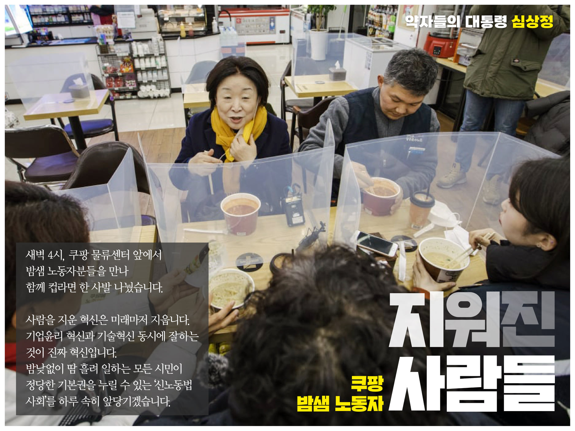 - 정의당 심상정 대선 후보의 쿠팡 노동자와의 만남 홍보물의 공백 부분.
