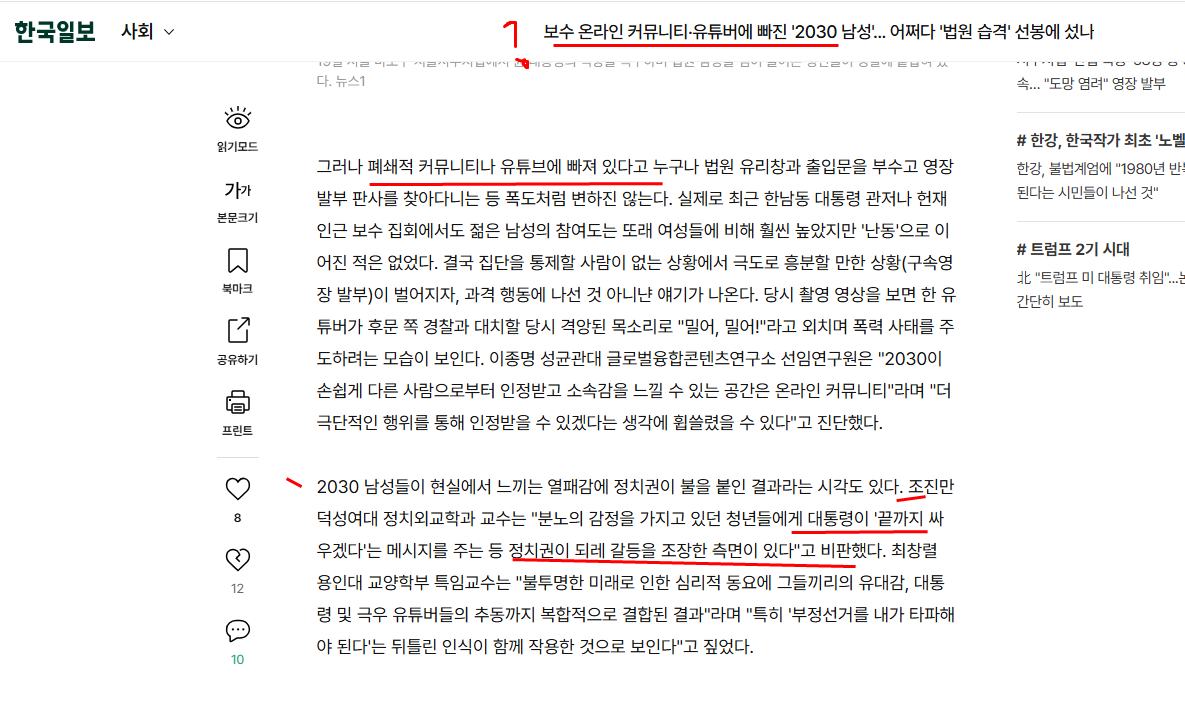 서부지방법원에 난입해 차은경 여자 판사의 이름을 부르며 살해위협을 한 자들과 폭도들에게는 소요죄를 적용해야 하고, 무관용 원칙이 지켜져야 한다. 그러나 이들을 2030 남자들을 대표하는 양 보도하거나, 극우에 빠진 아들들을 구출하자는 식은 그 해법이 되지 않을 것이다.