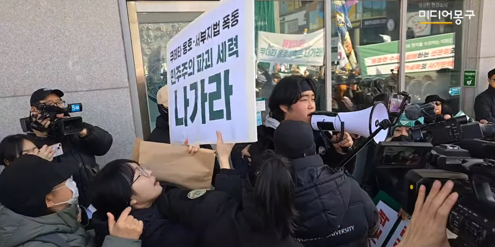 이대 난입한 극우, 드러눕고 난동... 학생들 "당장 나가"