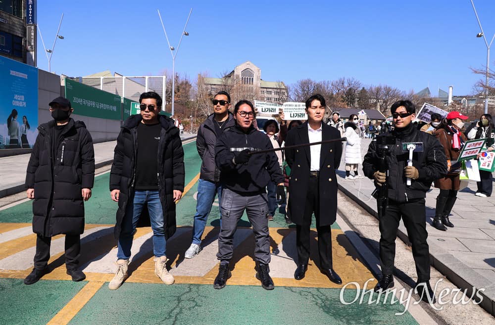 그러자 일부 유튜버들은 캠퍼스 외부를 돌면서 쪽문 등을 통해 교내 진입을 시도했다. 이날 오전엔 이화여대 야구점퍼(과잠) 등을 입은 학생 20~30명이 대강당 앞 계단에 모여 "표현의 자유", "탄핵 무효" 등의 피켓과 태극기, 성조기를 흔들었다.