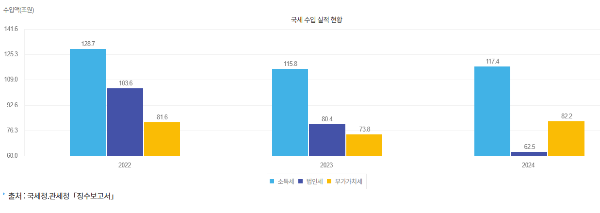 소득세 2022년 128.7 2023년 115.8조, 2024년 117.4조