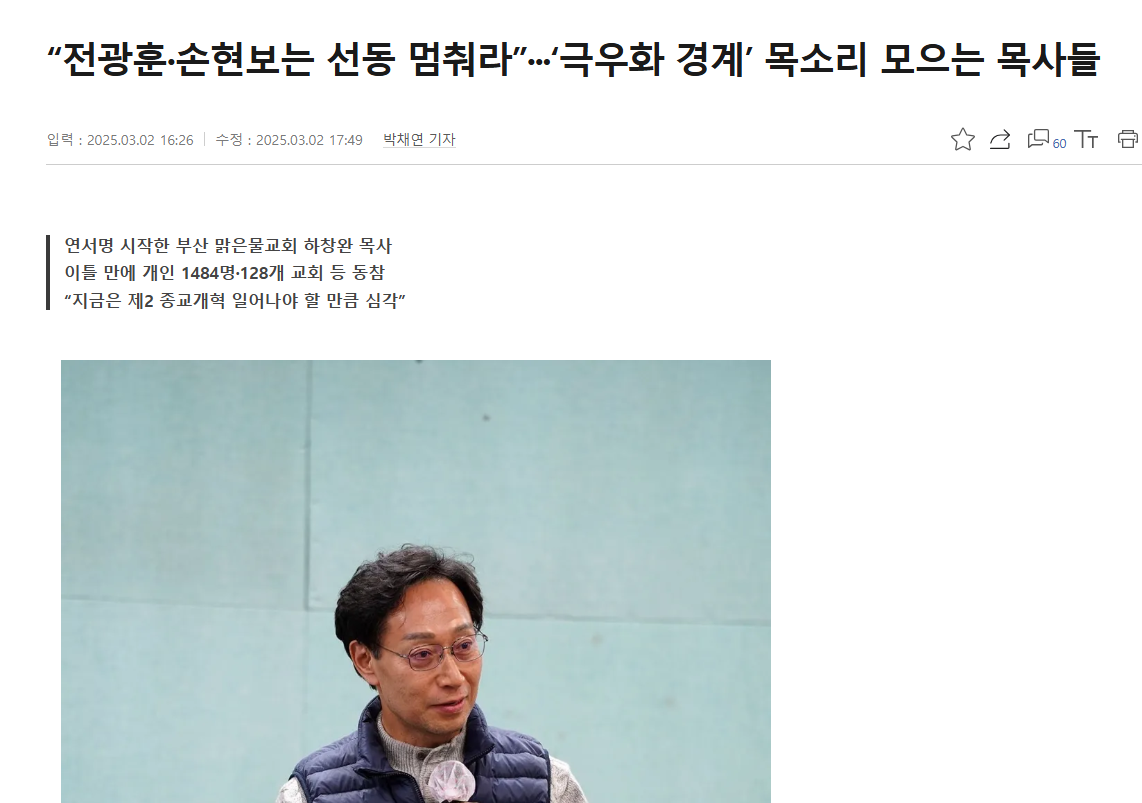 “전광훈·손현보는 선동 멈춰라”···‘극우화 경계’ 목소리 모으는 목사들