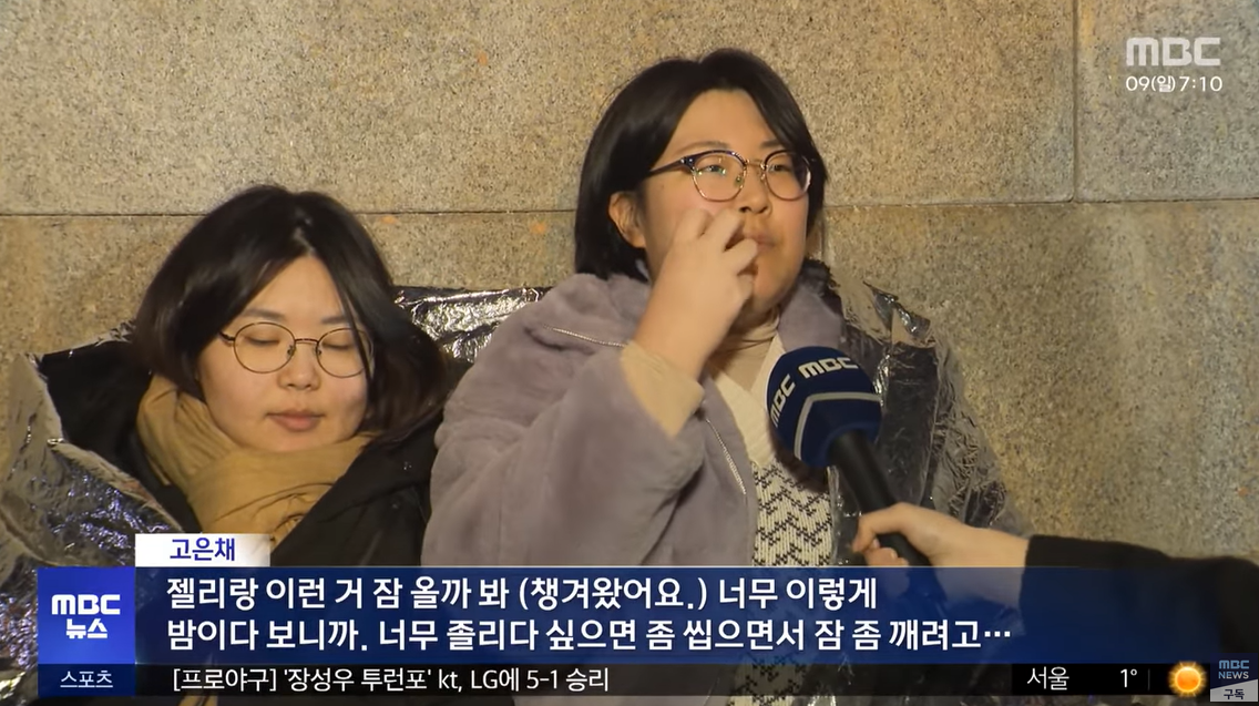 임규리 (서울) 철야 농성중. 여기 남아 있는 분들고 계시고, 또 이런 게 연대의 힘 아닐까 싶어서 남아있습니다. 아침에 다른 분들 오시면 (집으로 ) 갈 생각입니다.