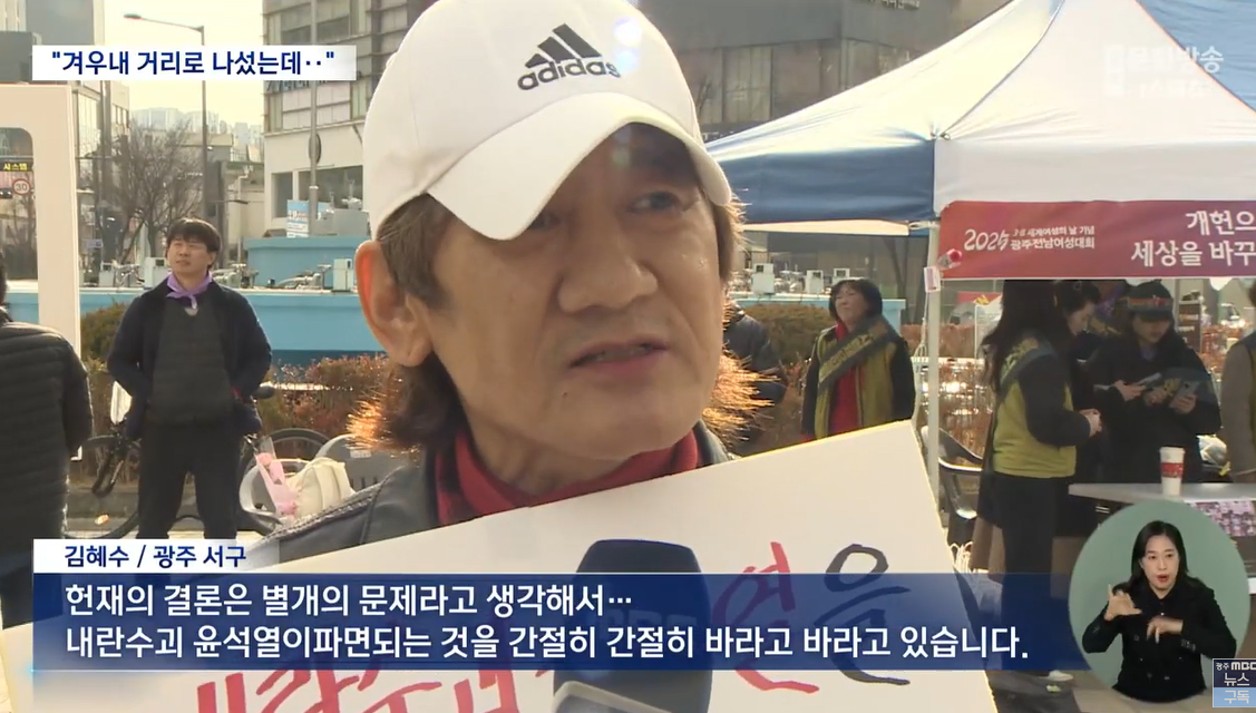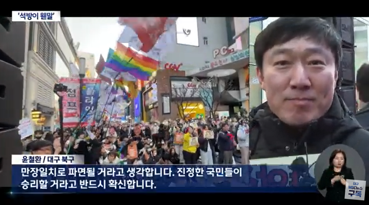 김성남 (대전시 가양동) 탄핵이 돼서 거리에 안 나왔으면 좋겠고요. 만약에 탄핵이 안되면 앞으로 저희도 계속 나와서 탄핵될 때까지 싸워보겠습니다.