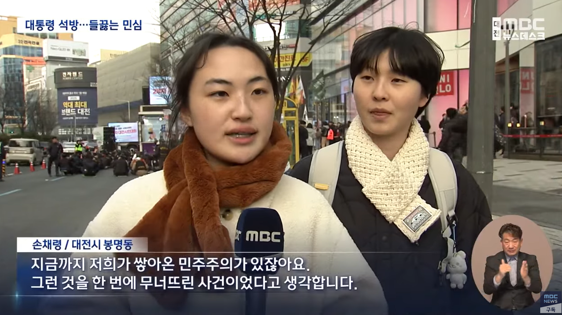 손채령 (대전시 봉명동) 지금까지 저희가 쌓아온 민주주의가 있잖아요. 그런 것을 한 번에 무너뜨린 사건이었다고 생각합니다.