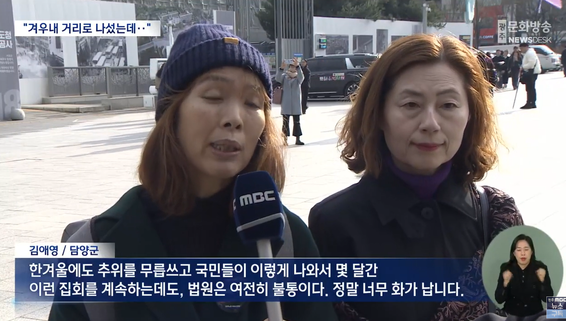 전남 담양 (김애영) 한겨울에도 추위를 무릅쓰고 국민들이 이렇게 나와서 몇 달간, 이런 집회를 계속하는데도, 법원은 여전히 불통이다.정말 너무 화가 납니다.