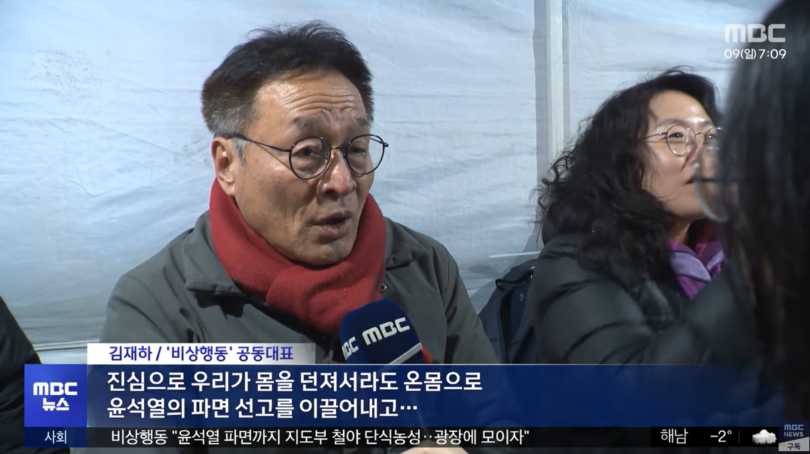 김재하 (비상행동 공동대표) 단식 돌입 이유, 진심으로 우리가 몸을 던져서라도 온몸으로 윤석열의 파면 선고를 이끌어내고...