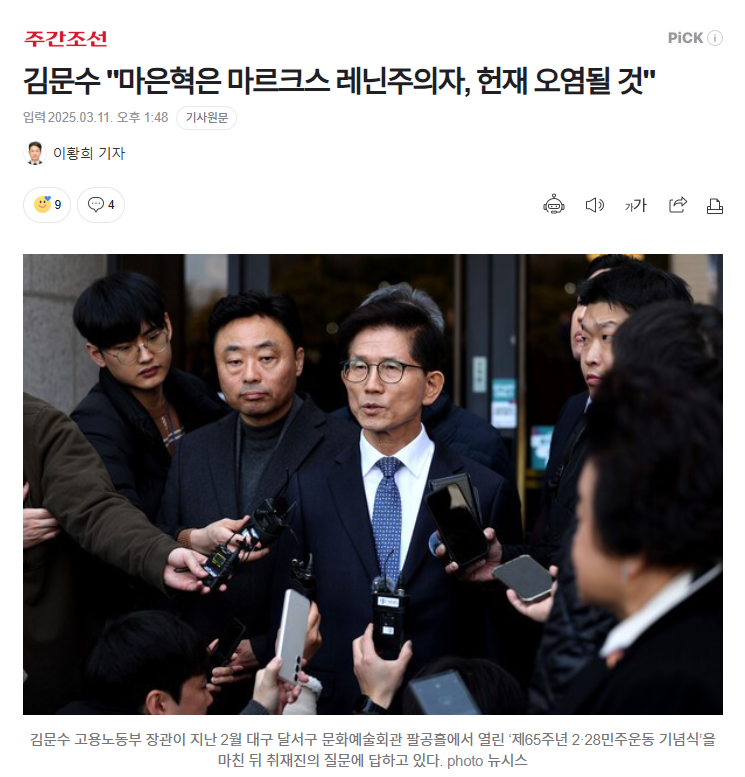 김문수는 과거 반공반북 이데올로기에서 한치도 벗어나기 못하고, 과거에 얽매여 살고 있다. 그리고 인간적으로도 추접스럽다. 마은혁의 삶의 궤적에 대해서 김문수가 속속들이 아는 것도 아닌데, 나는 '너를 다 안다'는 식으로 말하는 게, 꼭 전광훈이 '하나님 꼼짝마,나한테 혼나' 그런 머리와 똑같다.