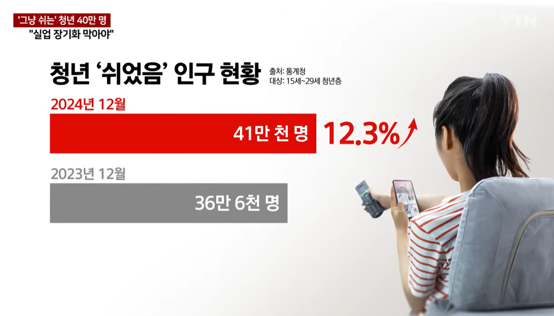 지난해 12월 15~29세 청년층 가운데 '쉬었음' 인구가 41만천 명에 달하는 것으로 조사됐습니다.