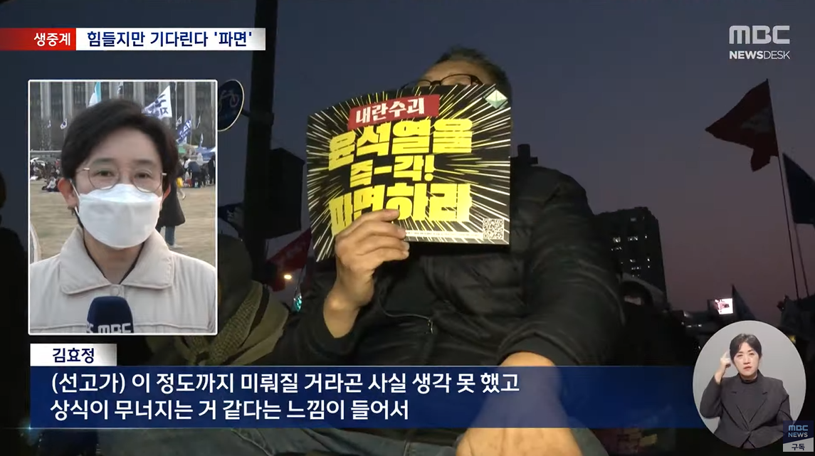 ) 이 정도까지 미뤄질 거라곤 사실 생각 못 했고 상식이 무너지는 거 같다는 느낌이 들어서 하루하루가 견디기 힘들었습니다. 하루빨리 이 판결이 파면으로 결론 지어지길 기다리고 있습니다."