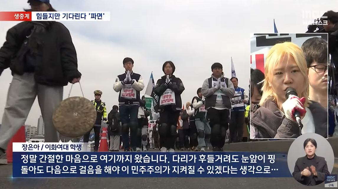"정말 간절한 마음으로 여기까지 왔습니다. 다리가 후들거려도 눈앞이 핑 돌아도 다음으로 걸음을 해야 이 민주주의가 지켜질 수 있겠다는 생각으로…"
