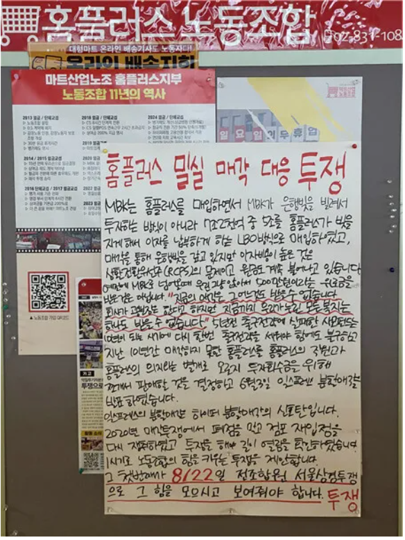 - 2024년 7월 17일 홈플러스 노조의 경고음. MBK 매각 밑작업에 대한 경고를 하다.