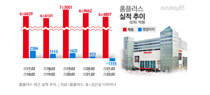 하지만 그 시기 유통업계가 빠르게 온라인 위주로 재편되면서, 오프라인 대형마트의 수익성이 크게 악화하기 시작했다. 특히 2020년 코로나19의 확산을 계기로 소매시장이 쿠팡을 비롯한 이커머스 위주로 격변했고, 홈플러스는 직접적인 타격을 받아 2021년부터 영업적자에 빠졌다. 한 대형마트 관계자는 “이커머스 전환기에 온라인몰에 대한 투자는커녕 차입금을 변제할 여력조차 떨어지는 등 크게 실기한 것”이라고 짚었다.