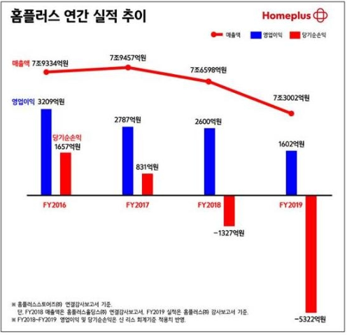 (1) 전자상거래와의 경쟁에서 뒤졌다. 홈플러스 인수할 때 '빚'이 많았다. MBK가 영국 '테스코'로부터 홈플러스를 인수할 떄, 7조 2천억원을 지불했다. 이중 4조 3천억원은 차입한 것이다. (대출, 해외 연기금, 보험사에서 조달)