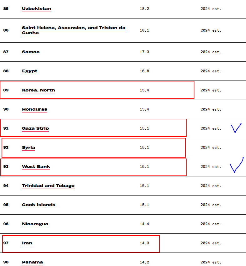 (3) 북한 15.4명. 팔레스타인 (가자 지구, 서안 지구 ) 15.1명, 시리아 15.1명