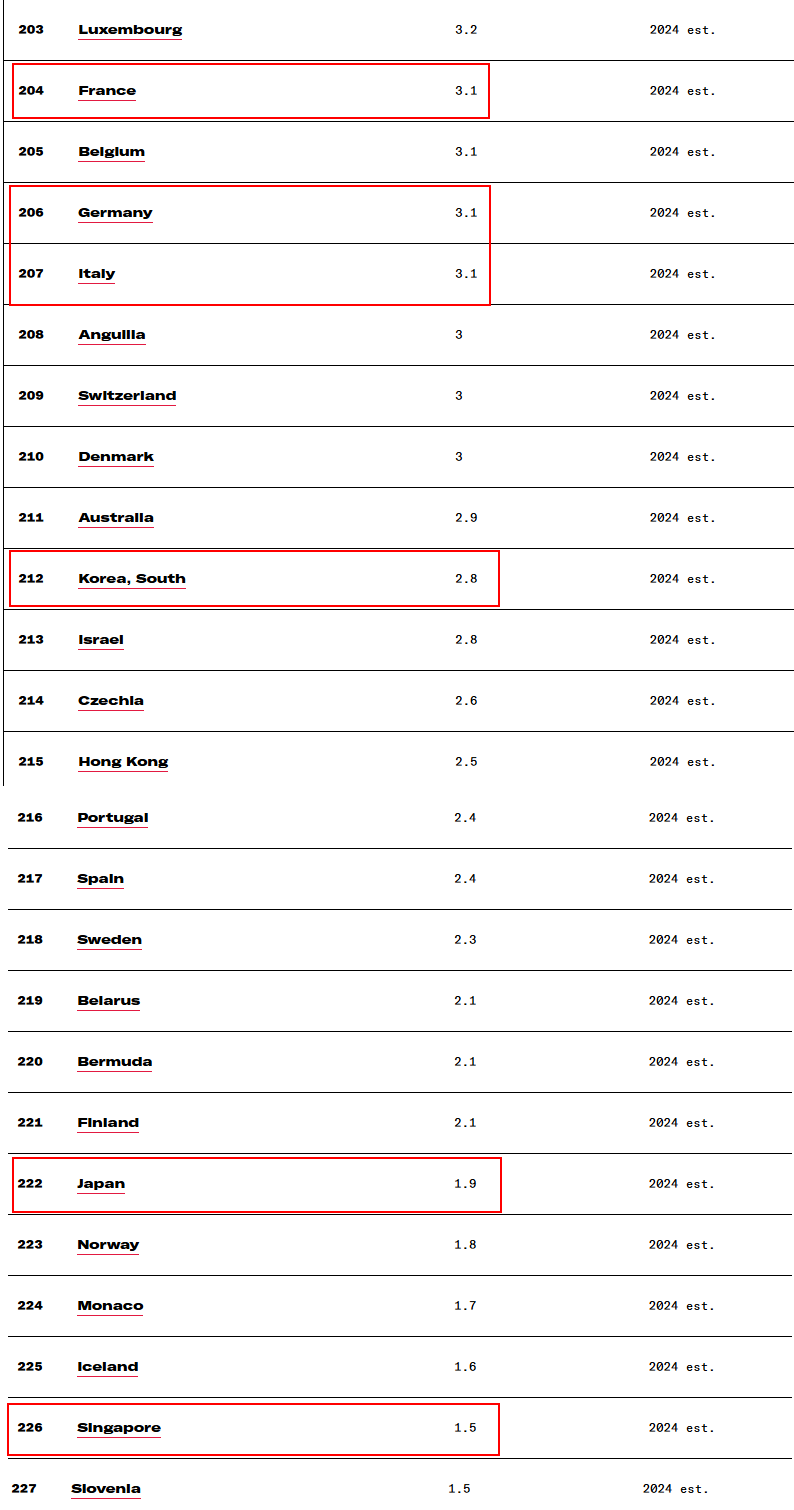 (1) 한국 2.8명. 프랑스, 독일, 이탈리아 3.1명, 일본은 1.9명, 싱가포르와 슬로베니아 1.5명으로 가장 적음.