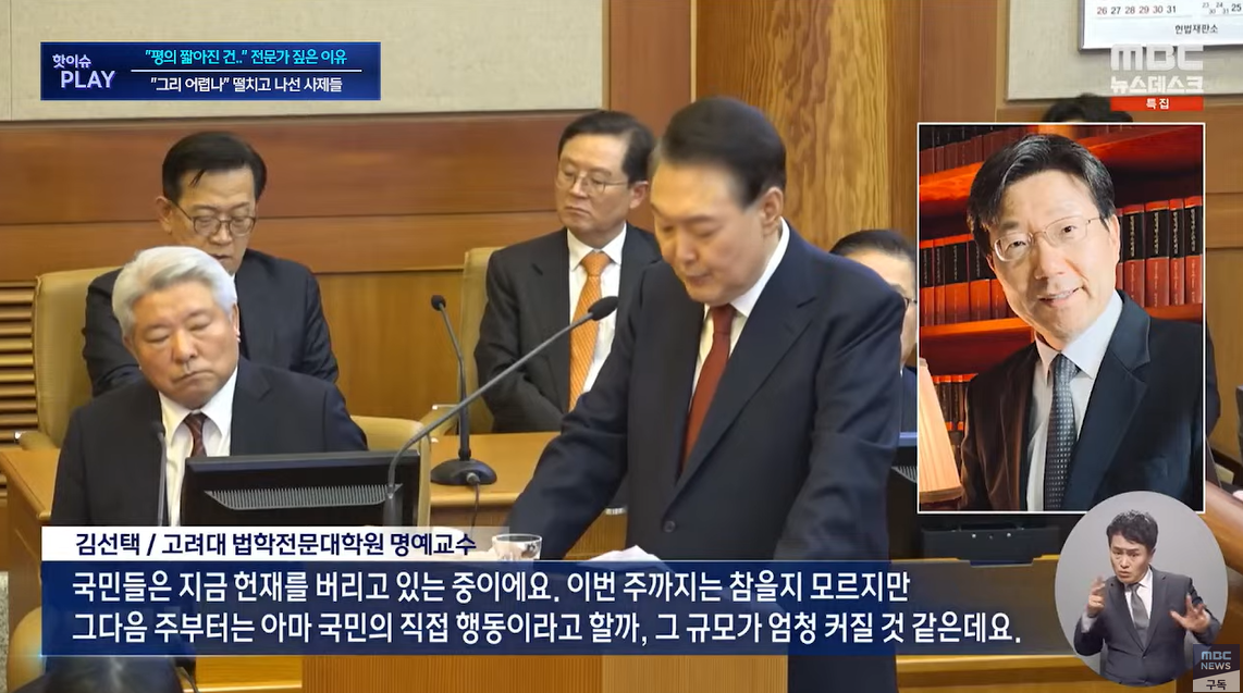 김선택 (고려대 법학 ) "국민들이 지금 헌재를 버리고 있다. 이번 주까지는 참고 있지만, 다음 주부터는 직접행동이 개시되고, 그 규모도 커질 것이다"