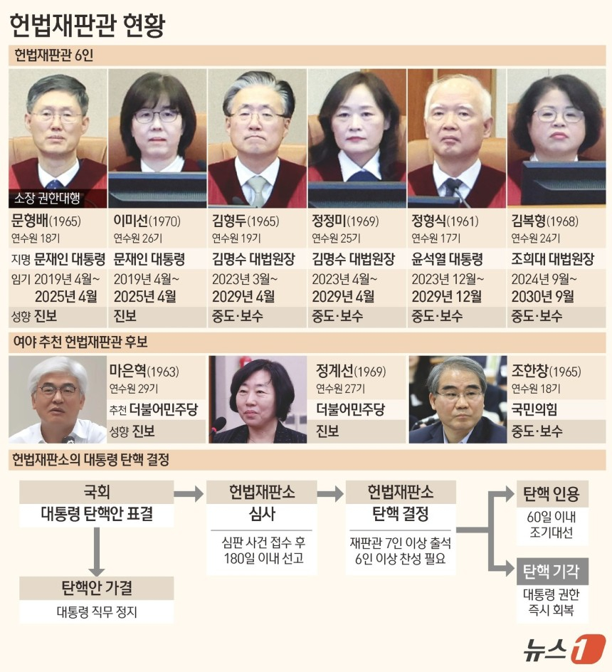 5. 4월 18일이 이미선, 문형배 헌재 재판관의 퇴임일이다. 4월 4일까지 윤석열 탄핵 재판 기일이 정해지지 않는다면, 문제는 더욱더 복잡해질 것이다.