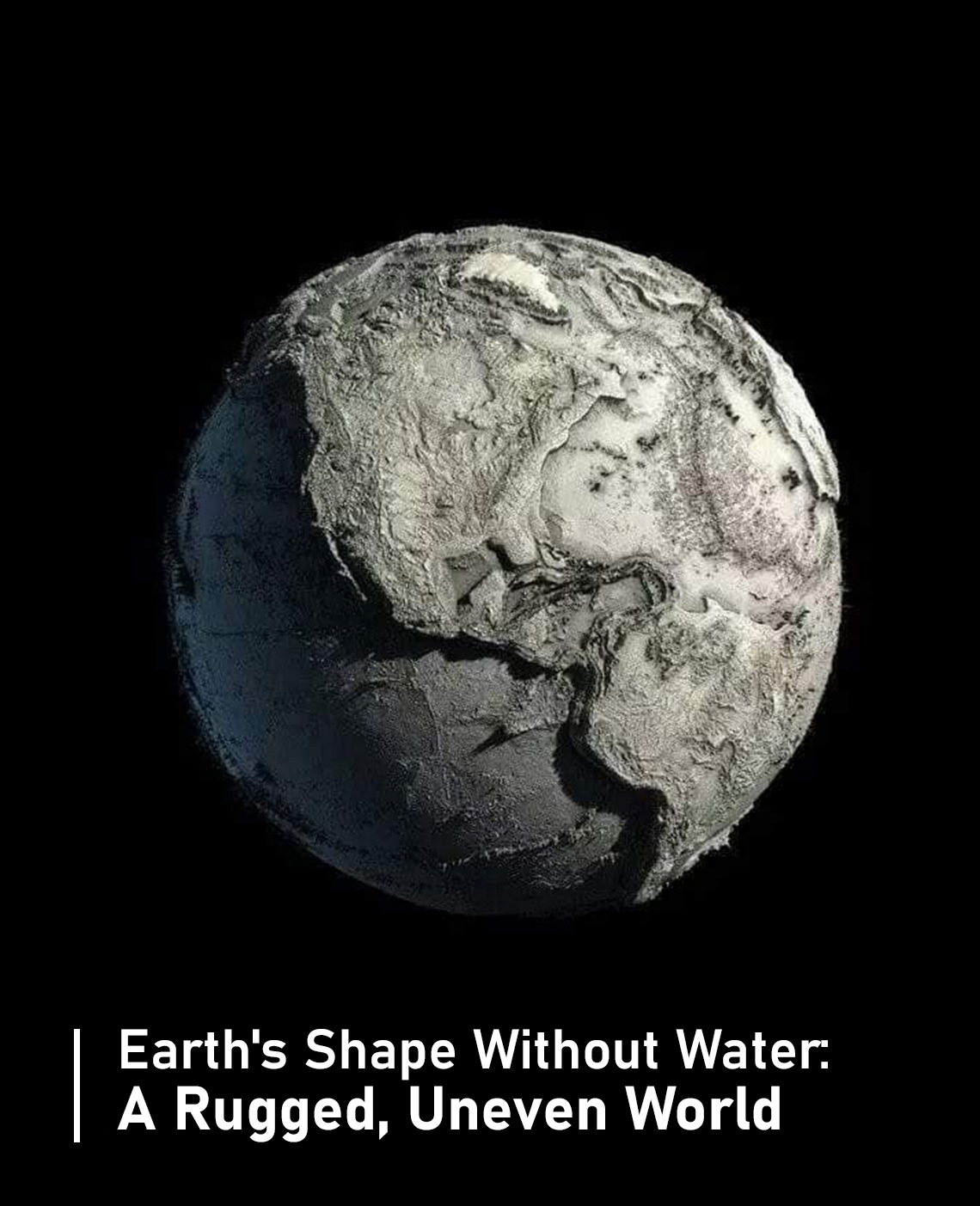 Earth without water would reveal the planet's true, jagged shape — a world sculpted by geological forces over billions of years.