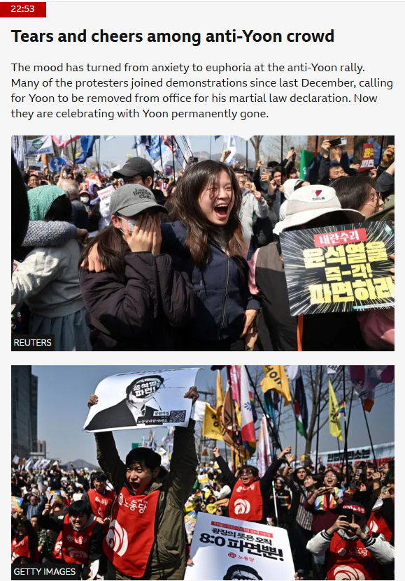Today’s ruling makes it official: Mr Yoon is no longer South Korea’s president. A snap election will be held within 60 days to elect his replacement.