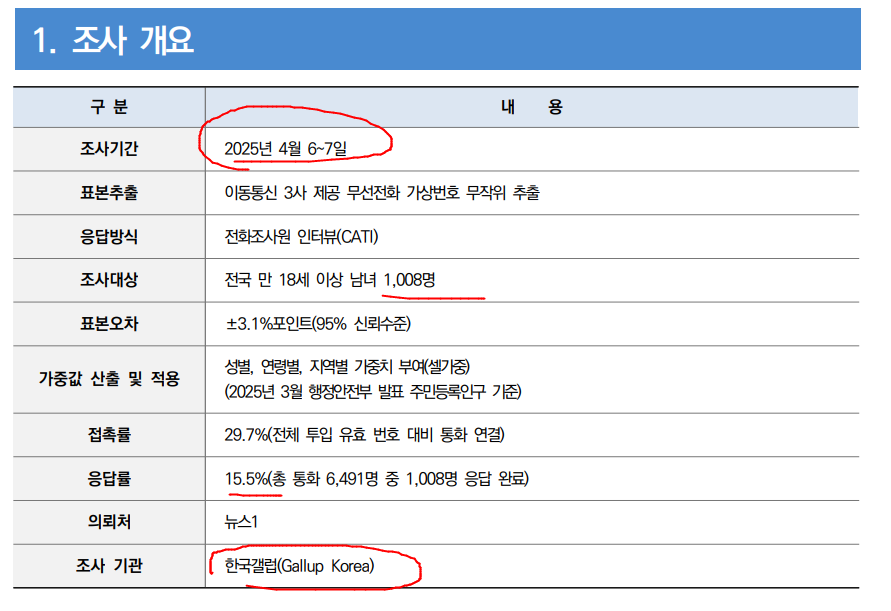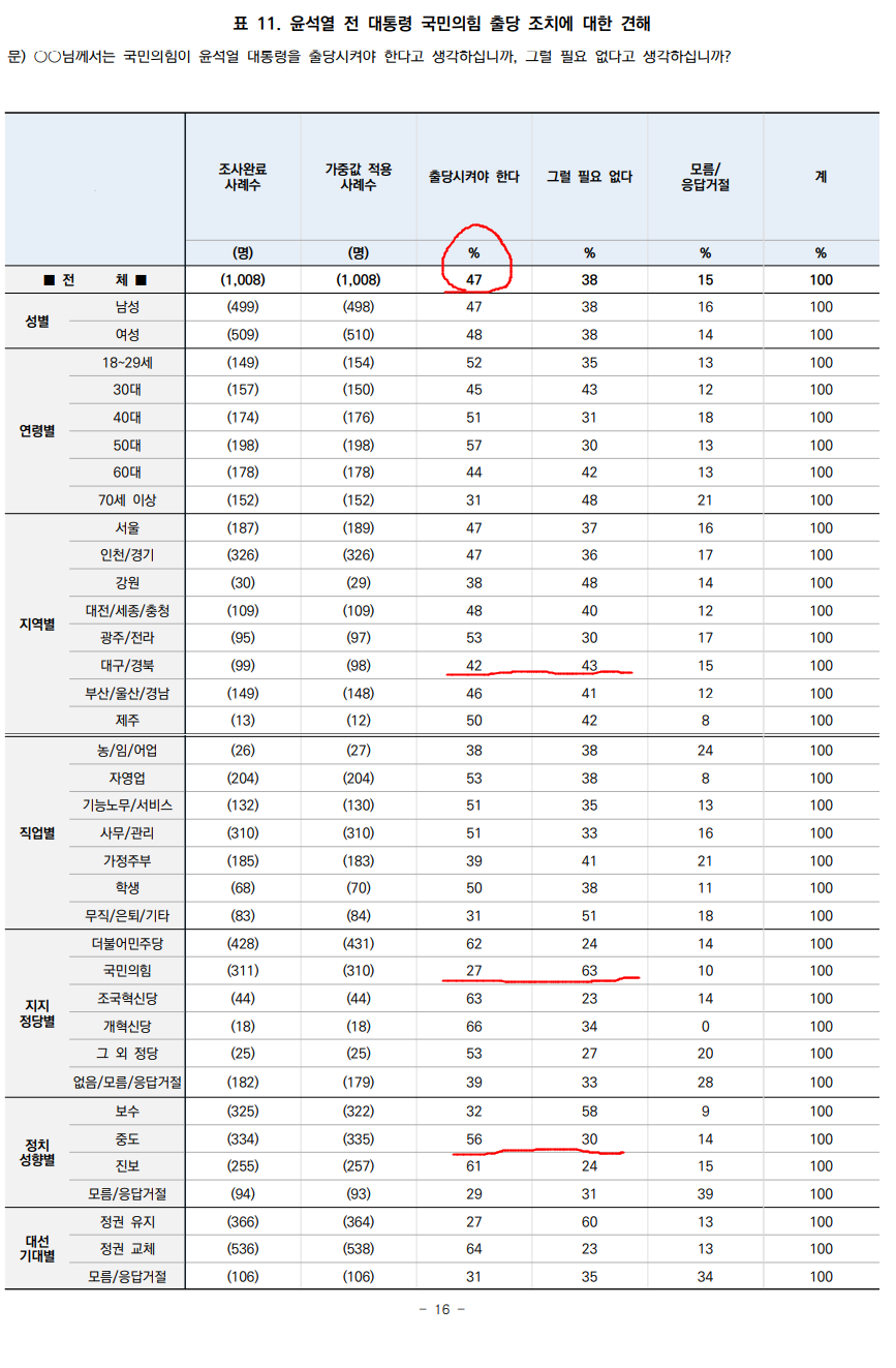 1. 윤석열 국힘 출당 조치 찬성 47% (반대 38%)