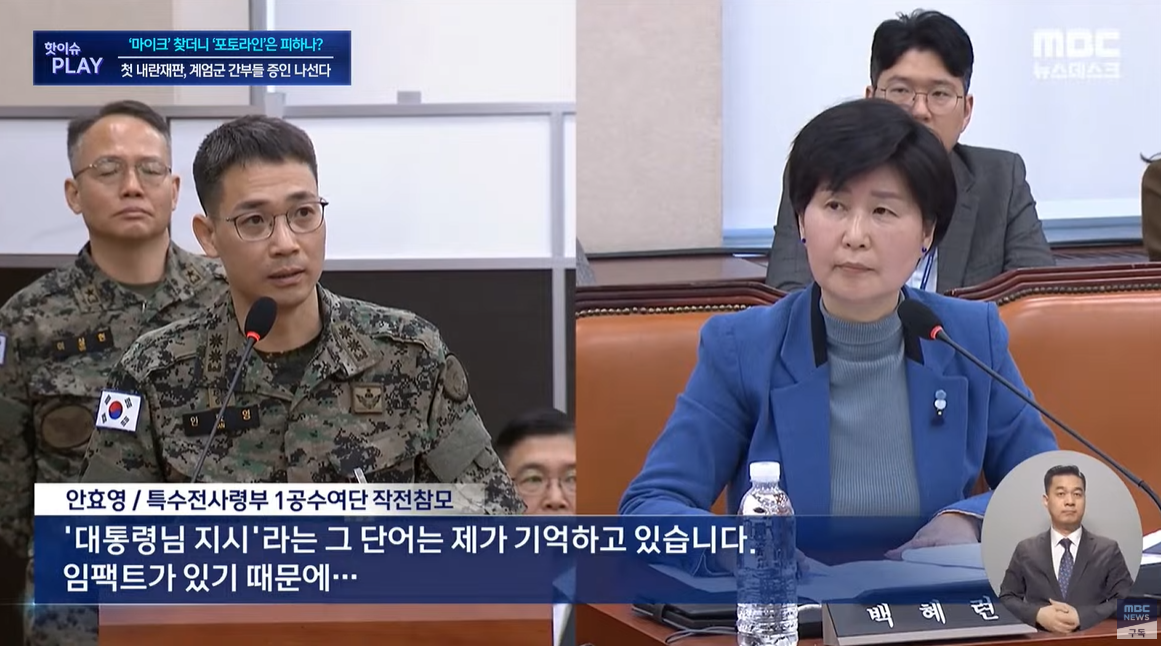 곽종근 707특수임무단 사령관도 윤석열으로부터 국회 안으로 들어가서 국회의원들을 바깥으로 끄집어내라는 지시를 받았다고 증언했다.
