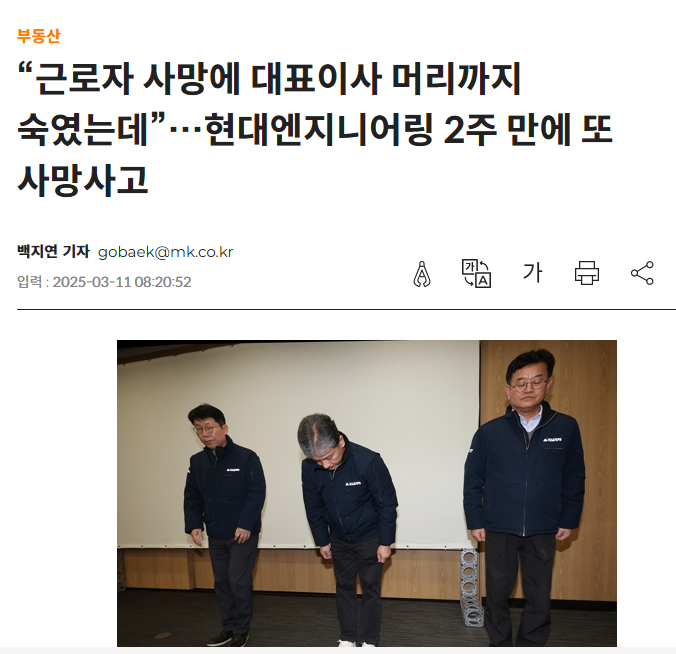 “근로자 사망에 대표이사 머리까지 숙였는데”…현대엔지니어링 2주 만에 또 사망사고
