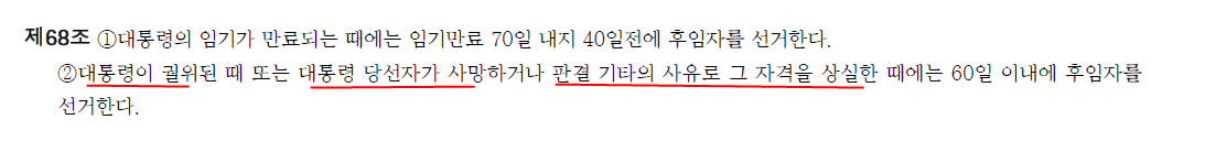 헌법 68조 2항에 대한 해석. 대통령 자격 상실과 조기 대선 실시.