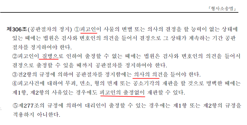 자료2. 현행 형사소송법. 재판중지에 대한 법률.