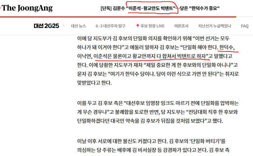 (2) 이준석이 김문수와 연대할 조건은, 국민의힘 '당대표, 당권 반납'이다. 그러나 김문수와 그의 지지자들이 이를 허용하지 않을 것이다. 왜냐하면 현재 국힘 내부에 권력 투쟁이 더 격렬하게 벌어질 것이기 때문에, 이준석에게 권력을 나눠줄 여력이 없다.