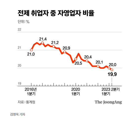 독일,일본,캐나다의 경우 자영업 비율은 8~9%이다. OECD 평균치도 10~12%이다.
