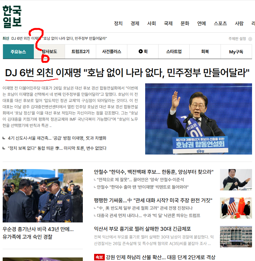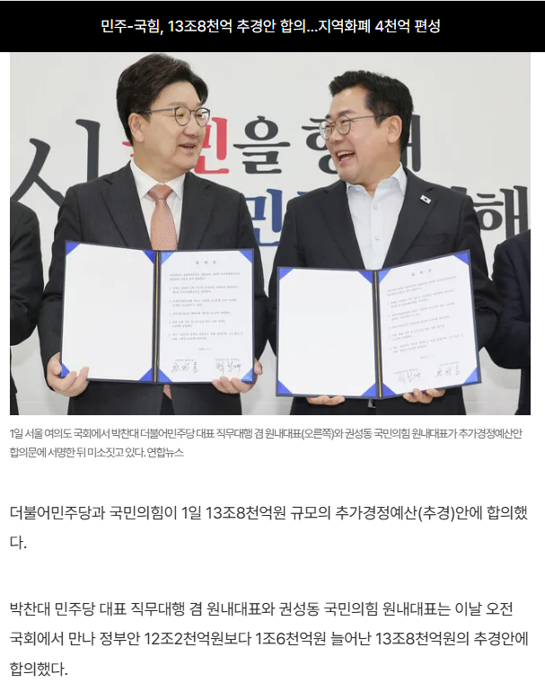 (2025년 5월 1일, 이날 오후 3시 대법원은 이재명의 공직선거법 위반에 대해 '유죄' 판결을 내리고, 서울고법에 파기환송심을 결정했다. 그 전에 민주 국힘은 추경안에 합의에, 파안대소를 짓고 있다)