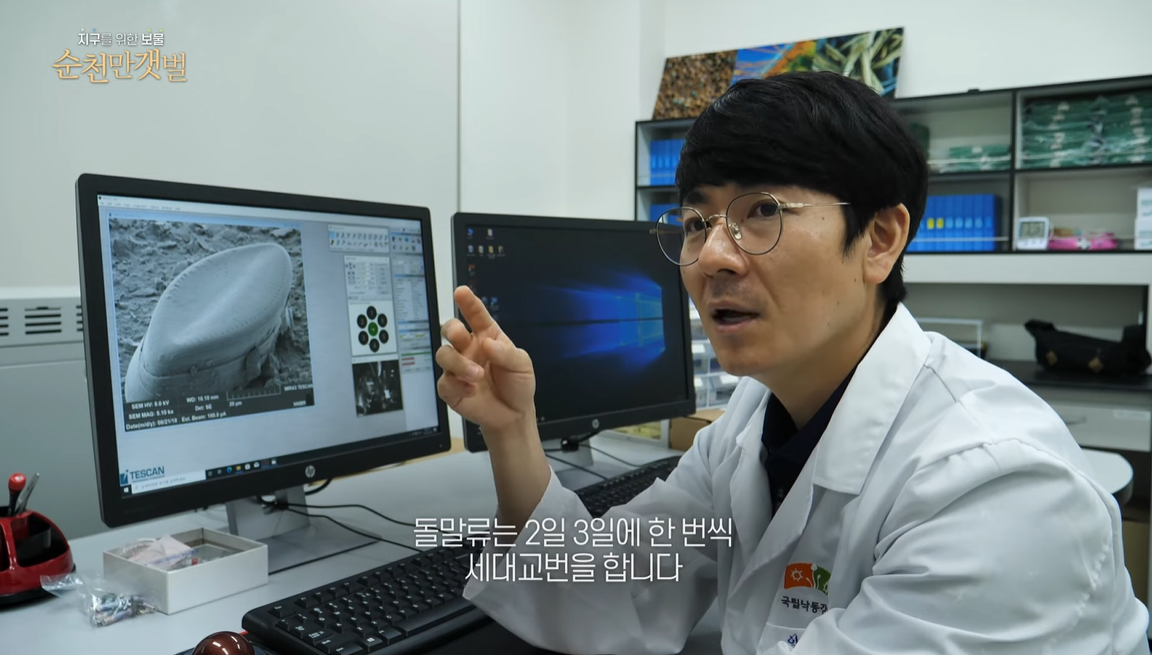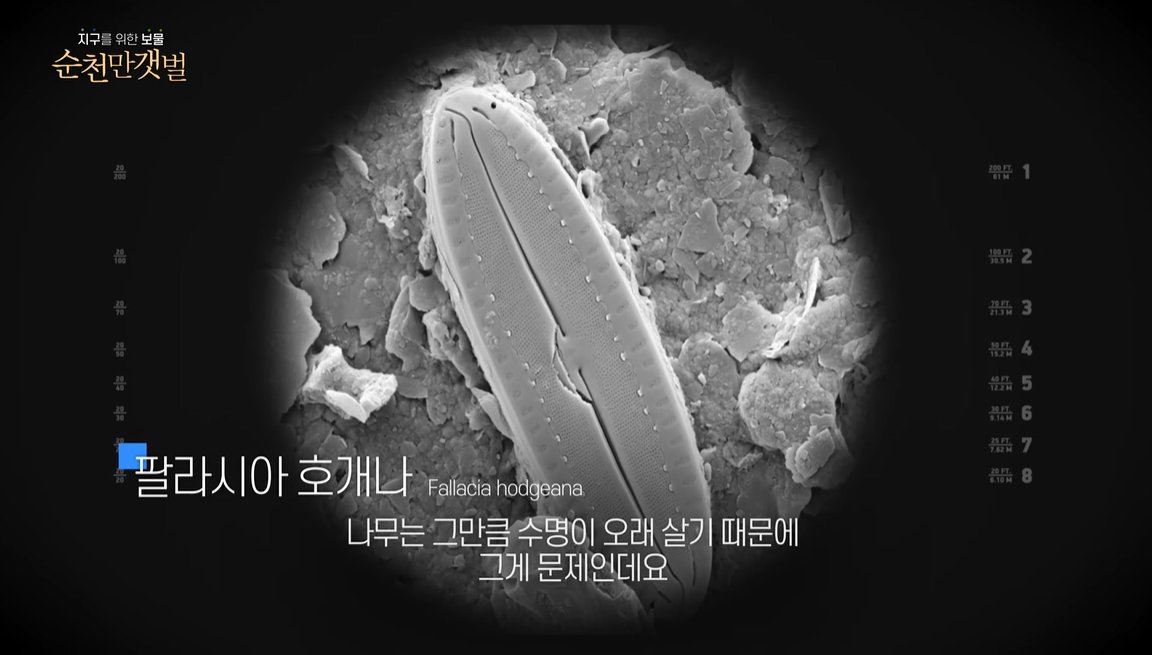 ‘갯벌‘은 탄소 흡수 속도가 육상 생태계보다 최대 50배 이상 빠르고 수천년 동안 탄소를 저장할 수 있는 ‘블루카본’으로 불리며 기후변화를 해결하는 가장 효과적인 방법으로 그 가치를 인정받고 있다. 특히 갈대 등 염생식물의 서식지로 복원 및 보존된 ‘순천만 갯벌‘은 우리나라 갯벌의 대부분을 차지하는 비식생 갯벌과 달리 IPCC(기후변화에 관한 정부간 패널)에서 인정하는 블루카본 대상지로 그 가치를 인정받고 있다. 다큐에서는 국립군산대학교 해양생물자원학과 권봉오교수팀이 작년부터 올해말까지 진행하고 있는 순천만갯벌의 블루카본 생산성연구의 결과를 통해 생태계가 복원된 순천만 갯벌의 가치를 조명한다. 특히 버려졌던 습지를 복원한 순천만 안풍습지 등 순천만 갯벌과 염습지의 탄소 흡수량과 저장량 결과를 최초 공개한다. 권봉오교수는 “순천만 갯벌이 갈대숲 뿐만 아니라 갯벌도 다른 갯벌에 비해서 훨씬 더 많은 탄소를 흡수 저장되어 있는 것을 확인했다”며 탄소의 관점에서 보더라도 간척지보다는 갯벌로 복원하는 게 중요하다고 강조했다. 또한 다큐에서는 탄소를 저장하고 산소를 발생시키는 규조류(식물성 플랑크톤) 중 세계 최초로 순천만 갯벌에서 발견된 기페니아 코리아를 공개한다. 1400년 전부터 이어지는 이 신종 규조류는 2일 3일마다 세대 교본을 할 만큼 지속가능한 광합성과 탄소흡수원으로서 가치를 지녔다고 평가받고 있다.