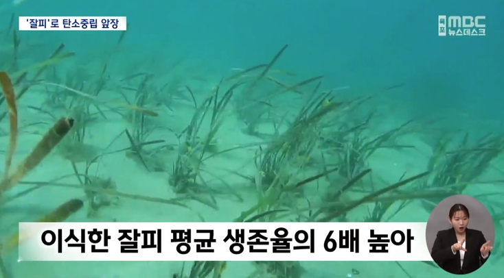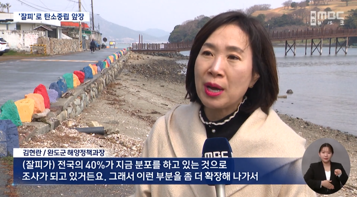 "(잘피가) 전국의 40%가 지금 분포를 하고 있는 것으로 조사가 되고 있거든요. 그래서 이런 부분을 좀 더 확장해 나가서 바다도 정화시키고 또, 탄소흡수원으로서 지구도 정화시키는 역할을 해나가는 데 주력하고 있습니다. "
