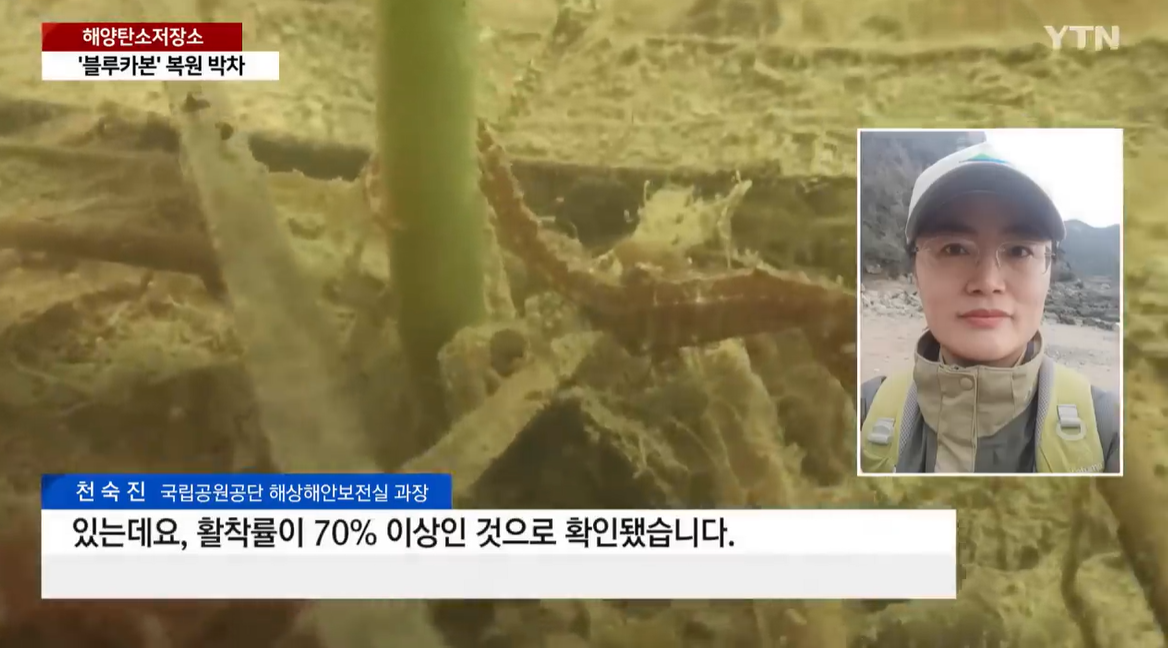 [천숙진 / 국립공원공단 해상해안보전실 과장 : 해초지를 복원하기 위해 저희 공단이 개발한 생분해되는 계란판에 거머리말을 끼워 심는 방식으로 개체를 이식하고 있는데요, 활착률이 70% 이상인 것으로 확인됐습니다.]