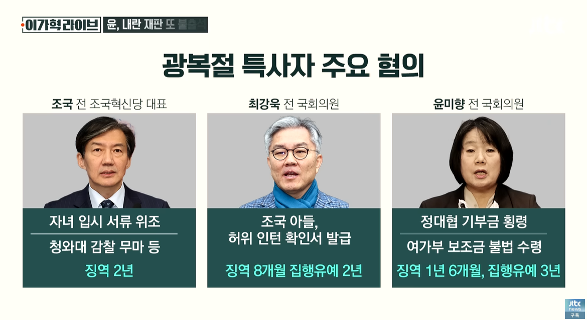 정치 분야 - 조국 전법무부 장관, 윤미향 전의원, 최강욱 뿐만 아니라, 정치인들이 사면받을 '명분'이 불충분하다.