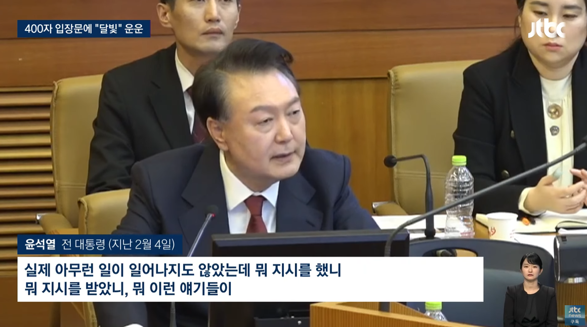 윤석열의 헌재에서 발언, "실제 아무런 일이 일어나지도 않았는데 뭐 지시를 했니 뭐 지시를 받았니, 뭐 이런 얘기들이 마치 그 어떤 호수 위에 떠 있는 달 그림자 같은 걸 쫓아가는 그런 느낌을 좀 많이 받았고요."