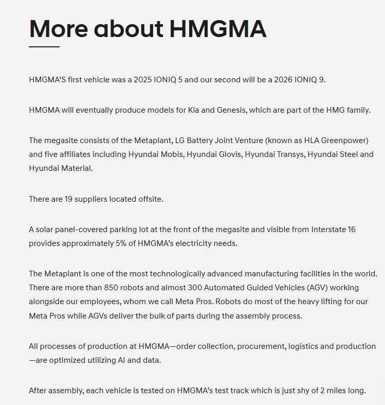 Hyundai Motor Group Metaplant America (HMGMA) is Hyundai Motor Group’s first dedicated mass-production Electrified Vehicle plant.