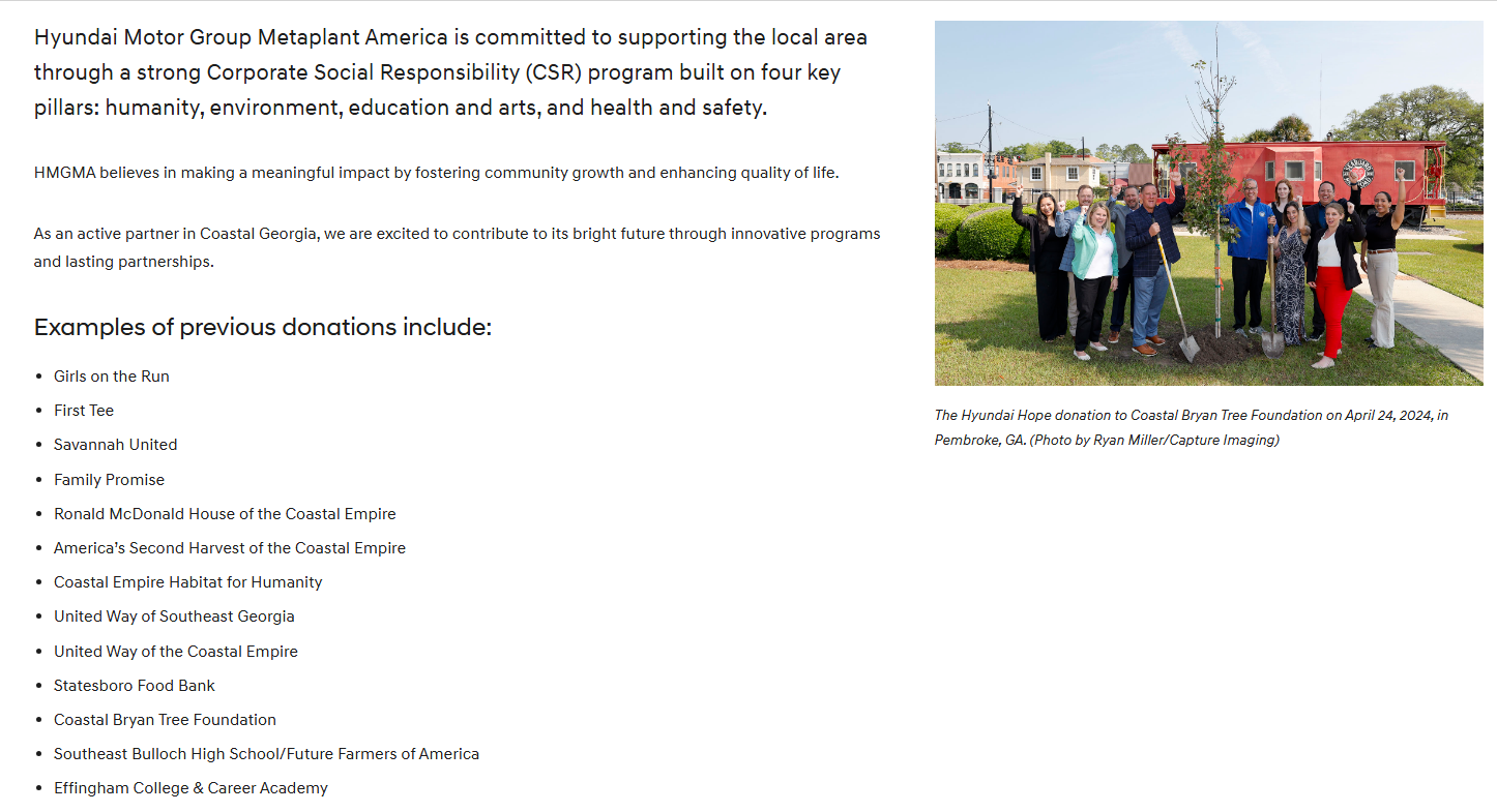 현대자동차 조지아 주, 메가플랜트 홈페이지 소개.
