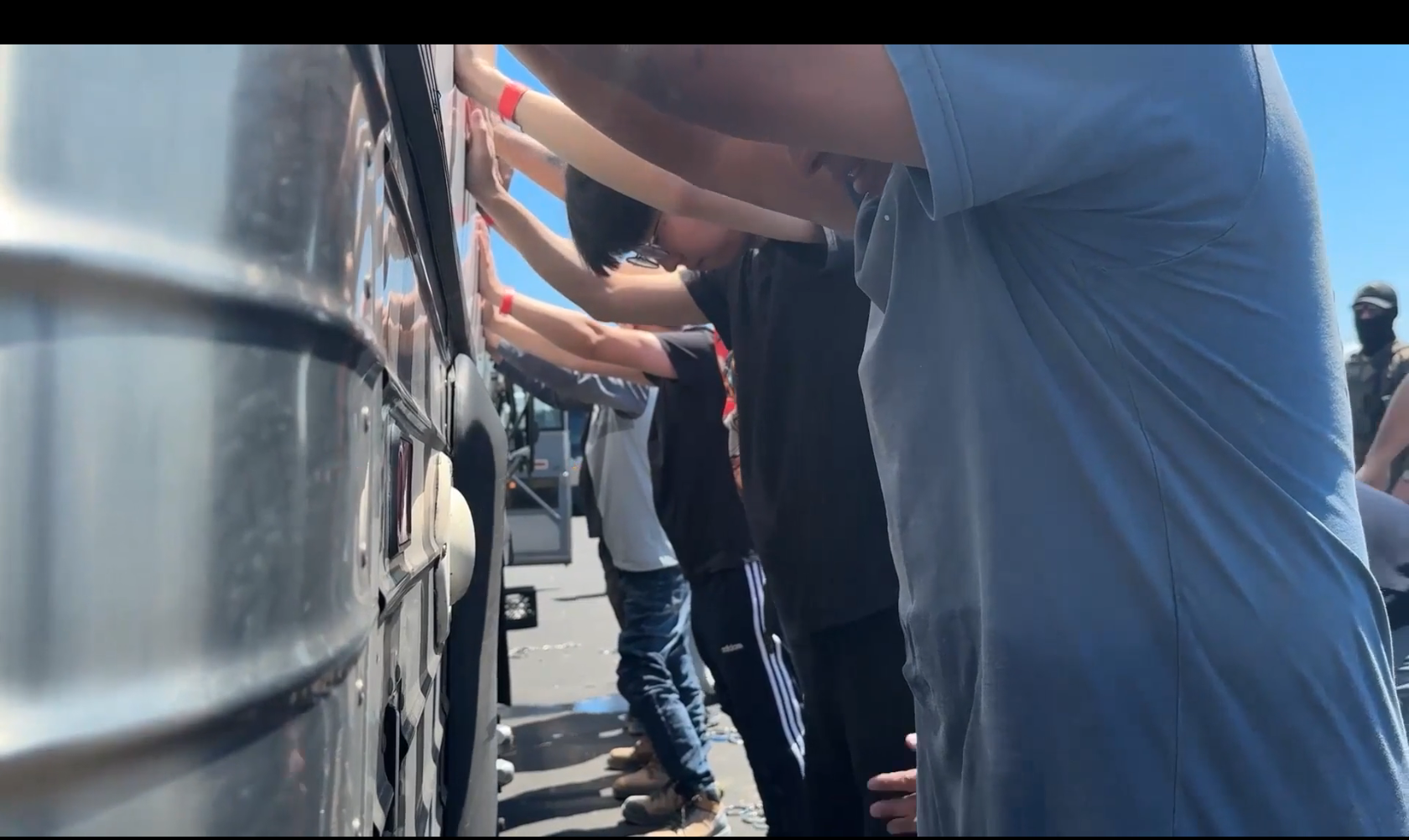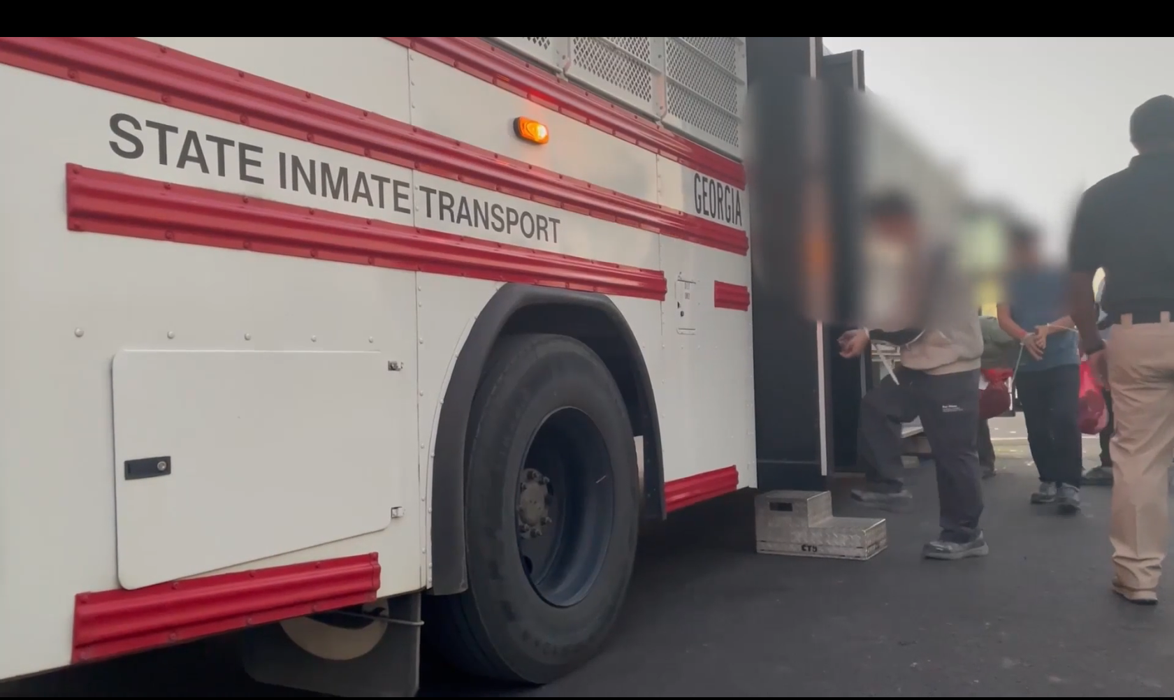 건설현장 한국노동자들과 타국 노동자들은 쇠사슬 수갑에 채워져, 조지아 주 교도소 호송차로 실려갔다.