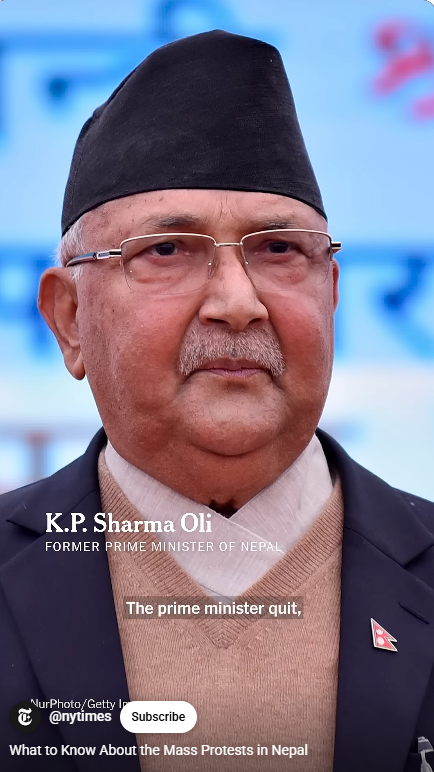 9월 9일 화요일 사먀 올리 수상이 사임 발표. 네팔 장관들 중 일부는 해외로 도망쳤다.