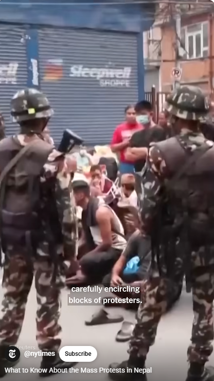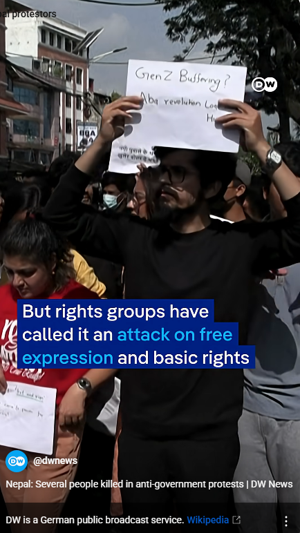"이것은 우리의 혁명이다. 우리 차례이다. 네팔의 Z 세대 시위대는 부정부패 추방을 외쳤다" 부상당한 시위대 명단, 나이, 18세, 22세, 20세,18세, 23세. 사우라브 (부상당한 시위대 , 18세 학생) "정치인들이 탐욕만 부리면서 나를 팔아먹고 있다. 우리 청년들은 탐욕이 없다, 네팔인들의 좋은 삶을 위해 노력할 것이다"