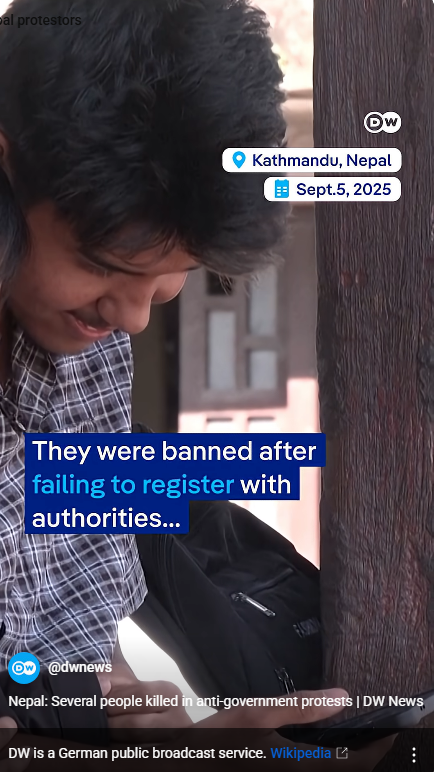 The demonstrations were triggered by the government's decision last week to ban 26 social media platforms, including WhatsApp, Instagram and Facebook, for failing to meet a deadline to register with Nepal's ministry of communication and information technology.