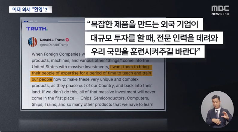 취임 이후 외국인 단속에 혈안이었던 트럼프 대통령이 언제 그랬냐는 듯 새로운 지침을 내놓으면서, 이번 조지아주 한국인 대규모 구금사태가 외국인 근로자에 대한 미국 정부의 기조까지 바꾼 결과가 됐습니다.
