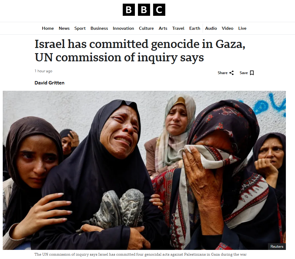 The commission's latest report alleges that Israeli authorities and Israeli forces have committed four of the five acts of genocide defined under the 1948 Genocide Convention against a national, ethnic, racial or religious group - in this case, Palestinians in Gaza: