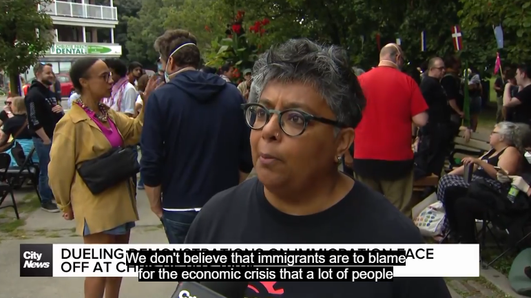 A counter-protest titled “No to Hate, Yes to Immigrants!” held its own demonstration, with some members calling the Canada First group “racist” while arguing immigration strengthens Canada.