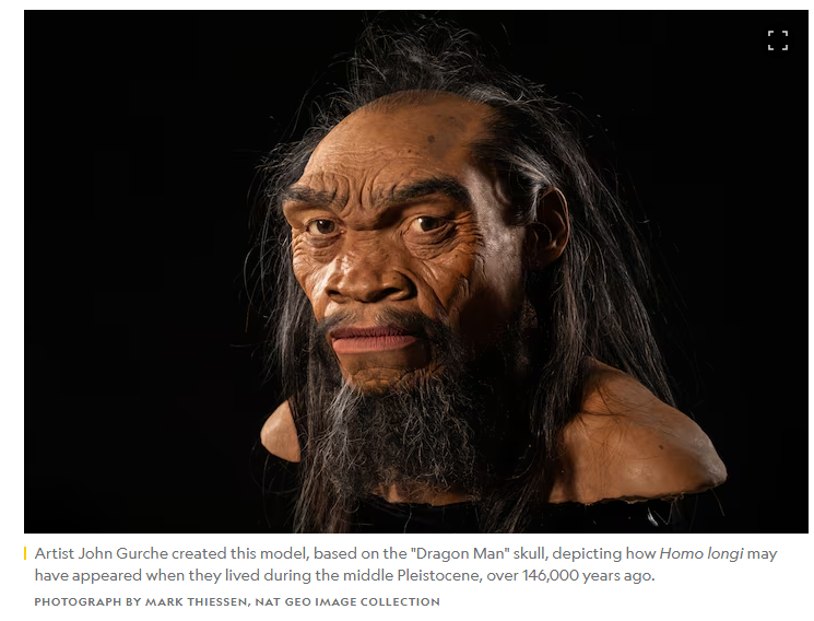 Artist John Gurche created this model, based on the "Dragon Man" skull, depicting how Homo longi may have appeared when they lived during the middle Pleistocene, over 146,000 years ago.