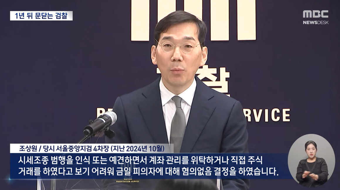 조상원 (검사. 2024년 10월) "시세 조종 범행을 인식, 또는 예견하면서 계좌 관리를 위탁하거나, 직접 주식거래를 했다고 보기 어려워, 김건희 (피의자)에 대해 혐의없음을 결정했다"